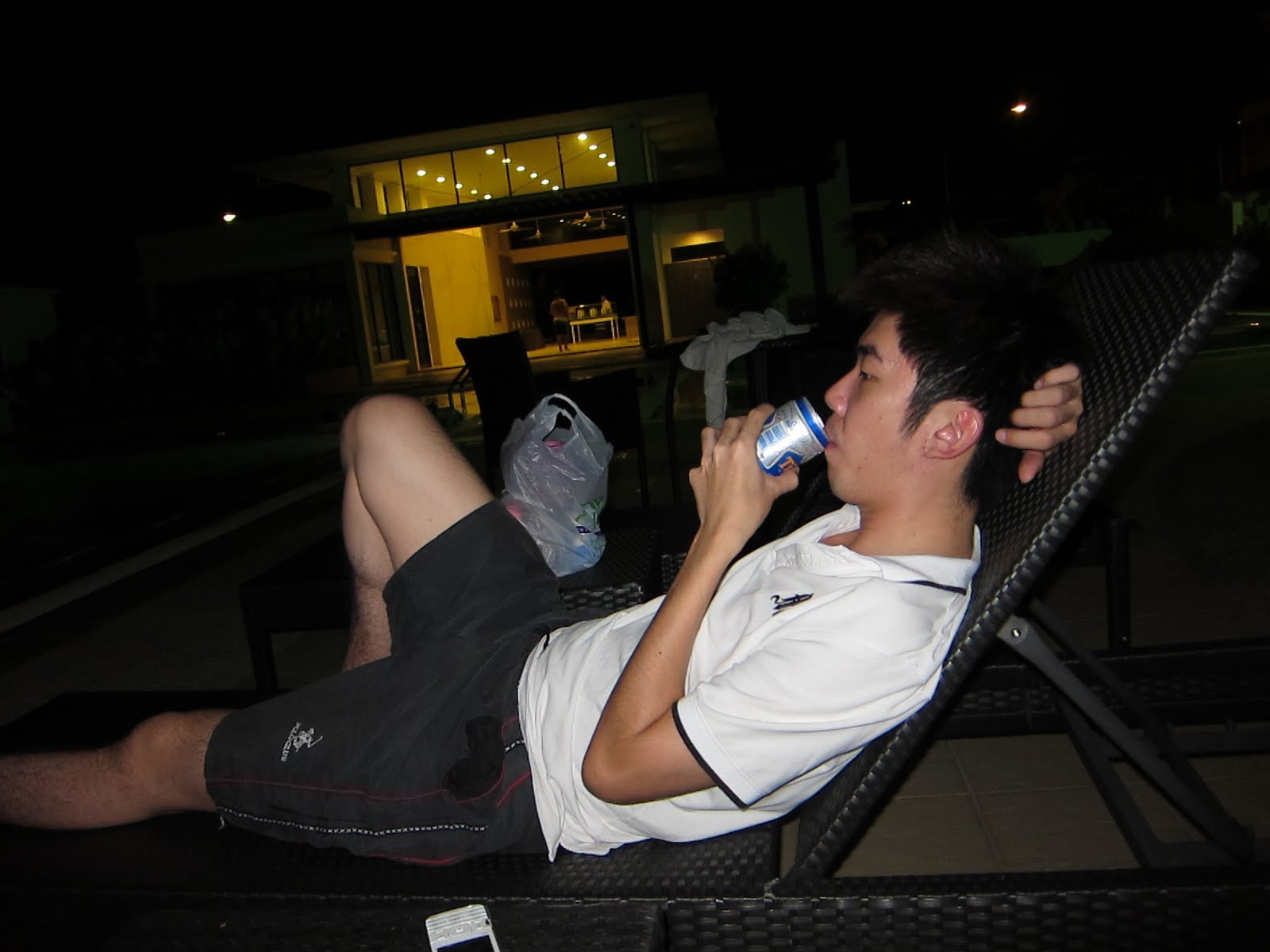 Here, Cs and I are enjoying beer and at the same time, being eaten to death by mosquitoes, before cs had the sense to go back for mosquito coil, and I jumped into the pool. =.=